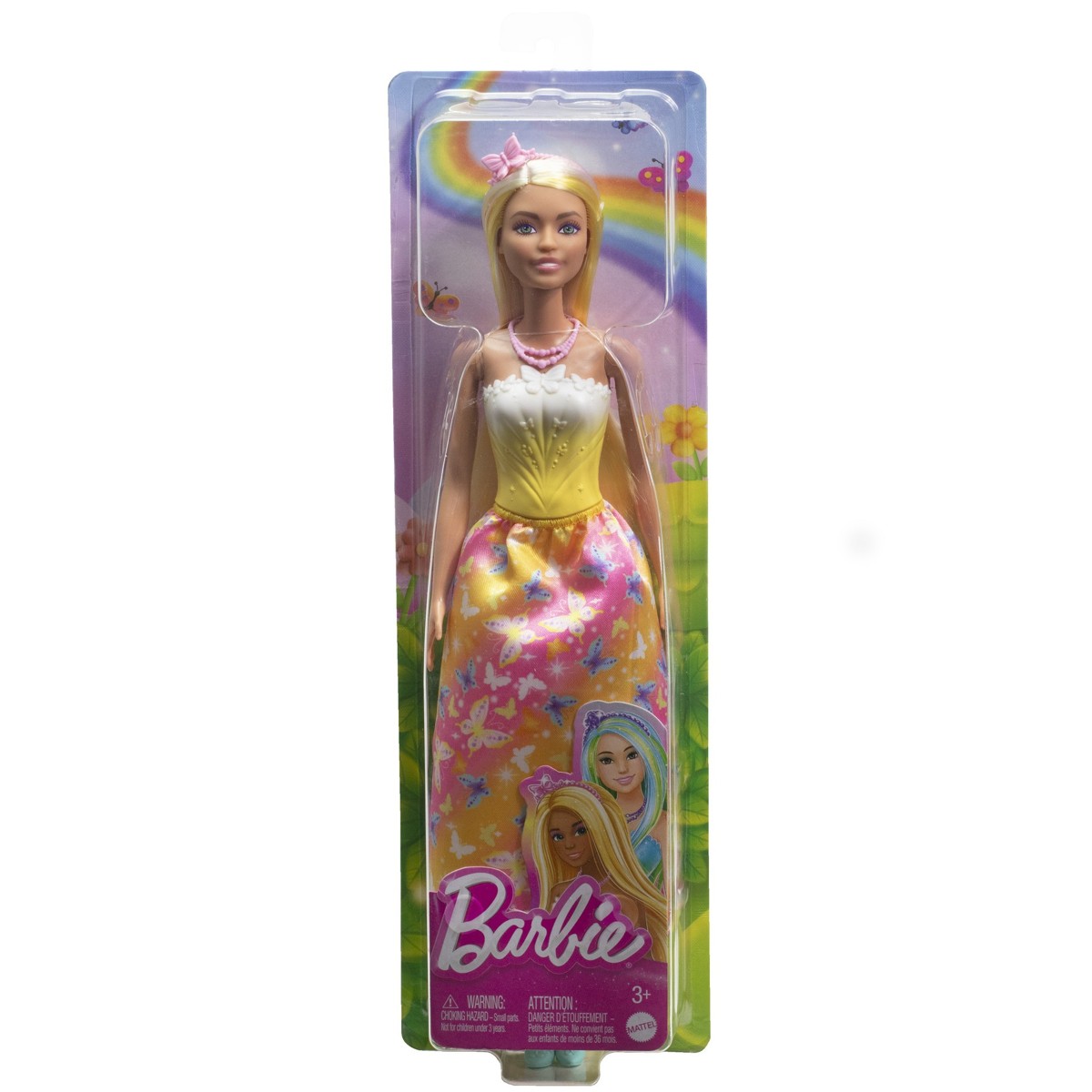 Barbie® lutka ima jarko obojene pramenove u kosi i nosi prekrasno detaljiran ombre korzet s pripadajućom suknjom s motivom leptira.