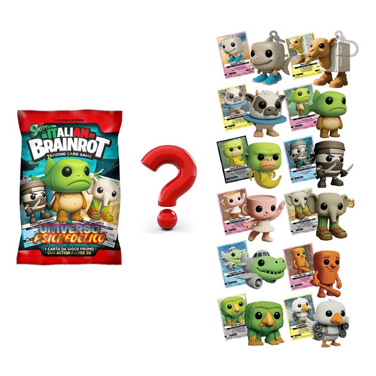 Pripremi se za zabavu i kolekcionarski hit s ovim Brainrot paketom uz ekskluzivni Brainrot privjesak i sjajnu holografsku kartu! Uz ovaj privjesak i holografsku kartu tvoja kolekcija dobiva novu, posebnu dimenziju. Blistava karta i unikatni privjesak zajedno stvaraju savršen spoj za svakog Brainrot fana. Dob: 3+