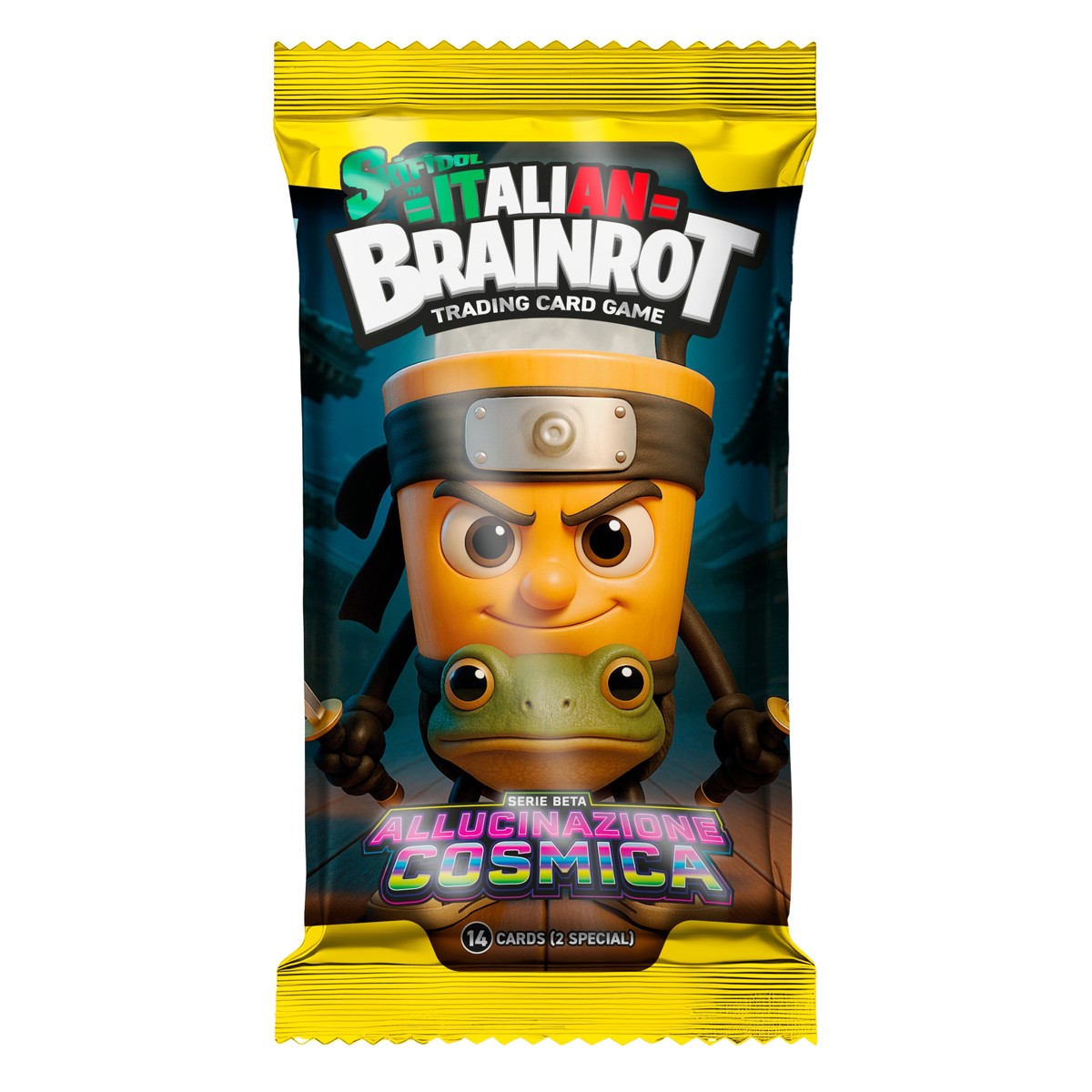 Među njima su 2 posebne holografske karte koje blistaju i odmah privuku pažnju. Skupljaj, razmjenjuj i otkrij najotkačenije likove i natpise koje ćeš htjeti pokazivati svima! Pripremi se na smijeh, šarenilo i totalni kaos – sve u jednoj vrećici! Izazovi prijatelje na potpuno neozbiljne bitke i dokažite tko vlada ovom otkačenom galaksijom!