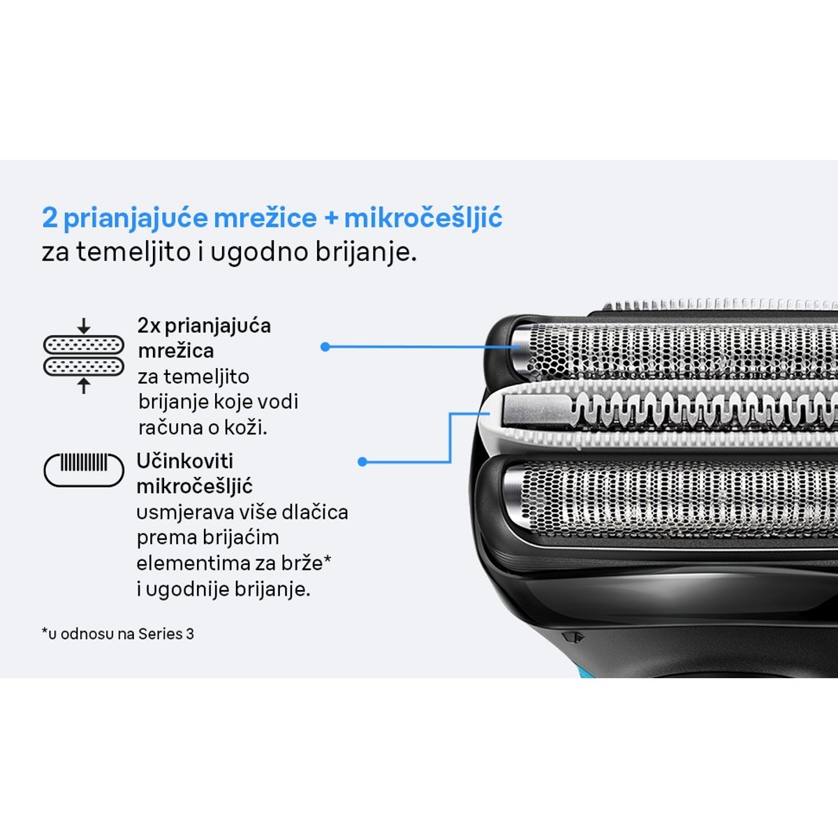 - Temeljito i ugodno brijanje: 2 prianjajuće mrežice i učinkoviti mikročešljić omogućuju ugodno i temeljito brijanje