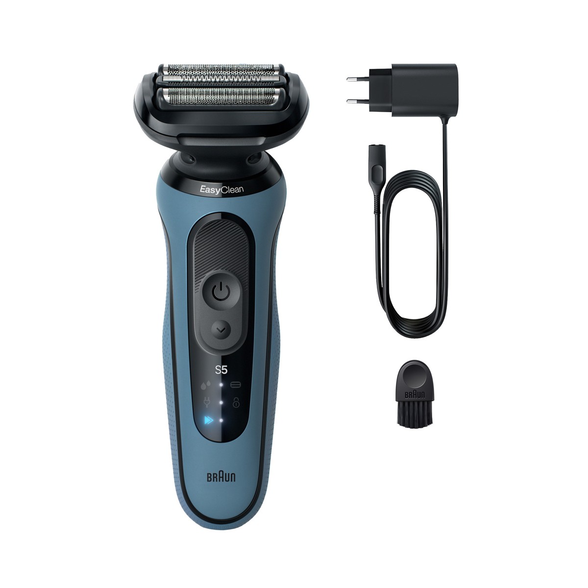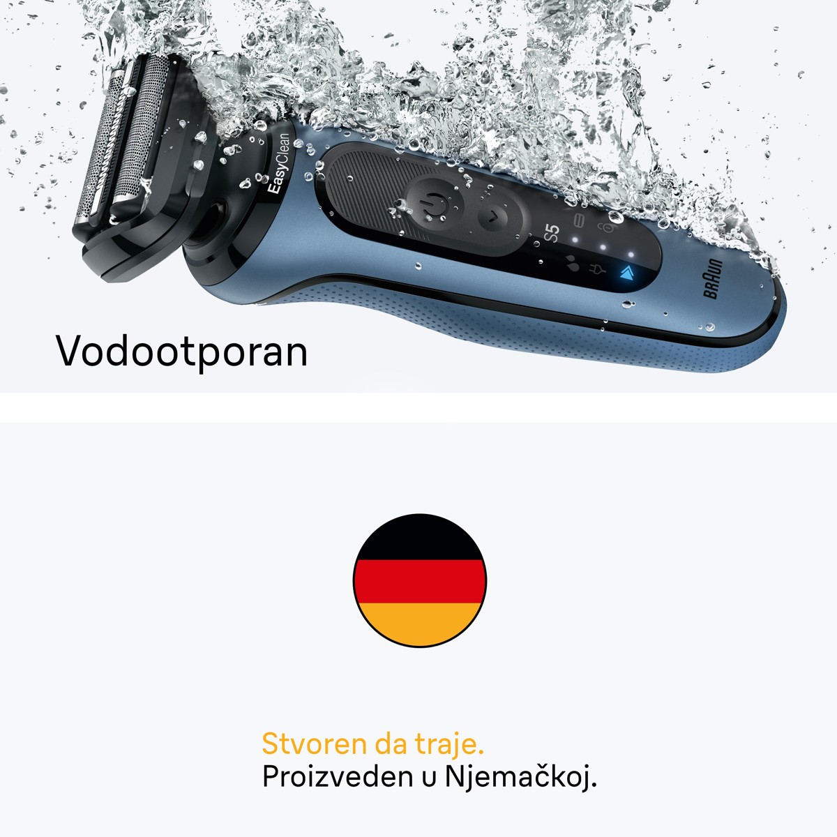 - Dolazi s litij-ionskom baterijom za 60 minuta rada, a moguće je i 5-minutno brzo punjenje. U kompletu dobivate: 1 brijaći aparat za muškarce Series 5 azurne boje s crnim detaljima, 1 punjač i 1 četkicu za čišćenje.