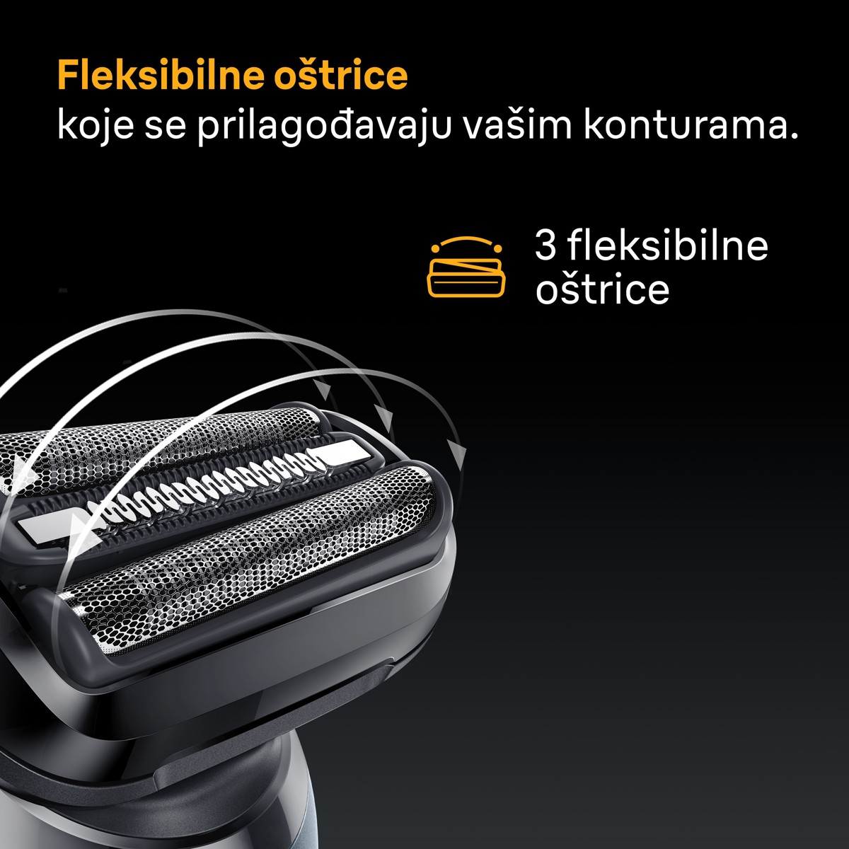 - Tri fleksibilne oštrice prilagođavaju se konturama vašeg lica kako bi brijanje bilo što ugodnije.