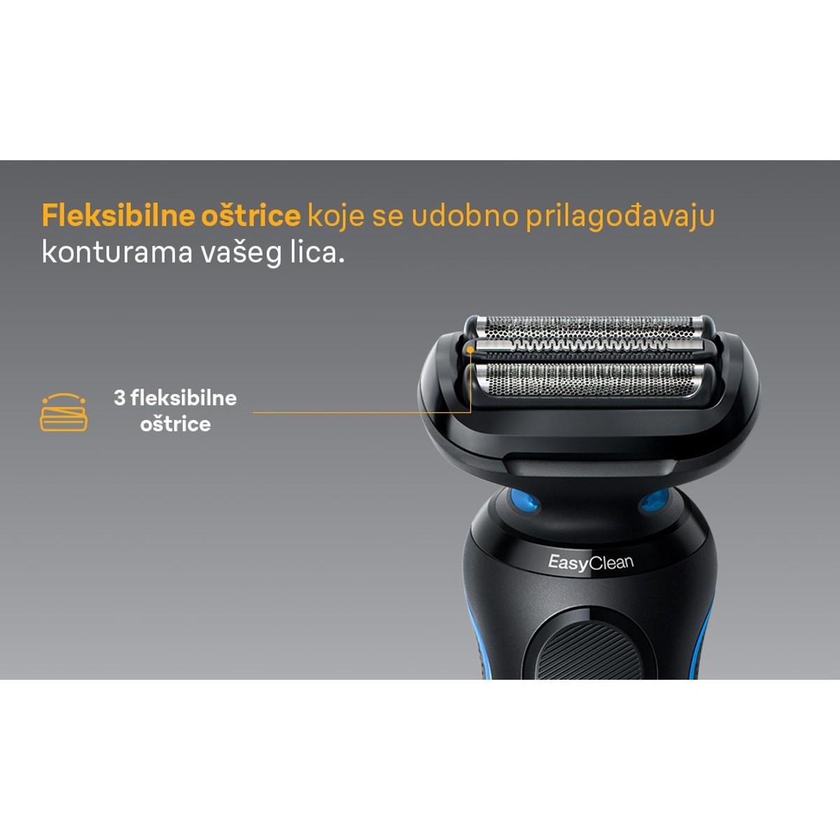 - Tri fleksibilne oštrice prilagođavaju se konturama vašeg lica kako bi brijanje bilo što ugodnije.