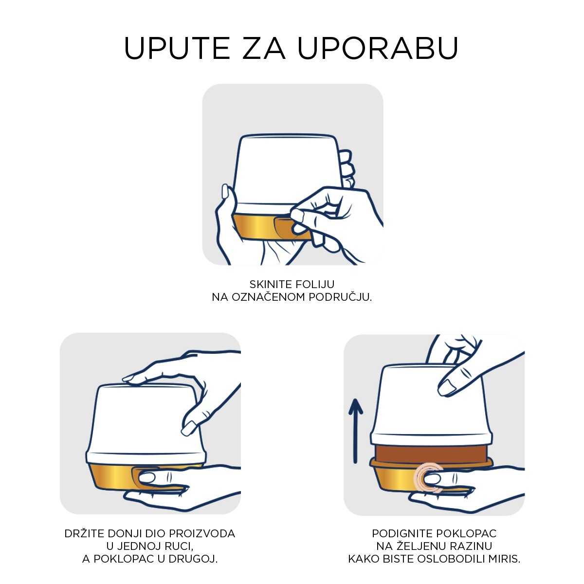 Skinite foliju na označenom području te podignite poklopac na željenu razinu kako biste oslobodili miris.