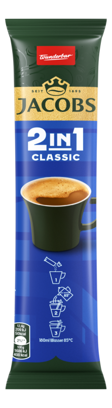 Jacobs Original instant napitak 2u1 u štapićima idealna je kombinacija za sve ljubitelje kave, koji puno putuju i ne žele propustiti dobru šalicu Jacobs kave.