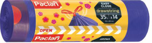 Paclan vreće za smeće s blagim mirisom koji upija neugodne mirise I štiti od njihovog širenja, s vezicom za lakše I sigurnije zatvaranje, veličina 53x60 ,14 komada u pakiranju