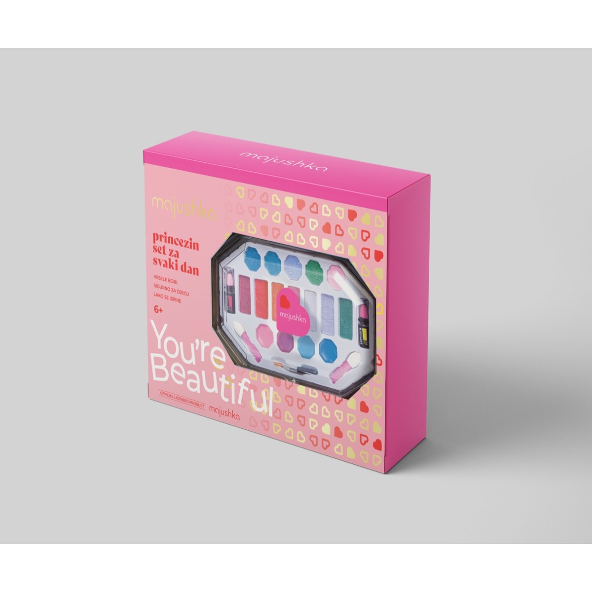 16 različitih boja sjenila, 2 ruža za usne, 3 aplikatora za šminkanje.