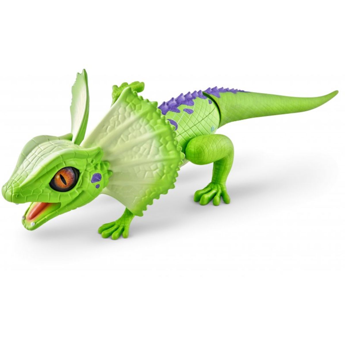 Jeste li dovoljno hrabri da ukrotite novog Robo Alive Guštera? Robotska tehnologija omogućuje mu nadmašiti čak i najbrže predatore. Nikad strašniji s očima koje sijaju, gumenim repom i glavom koja se miče!